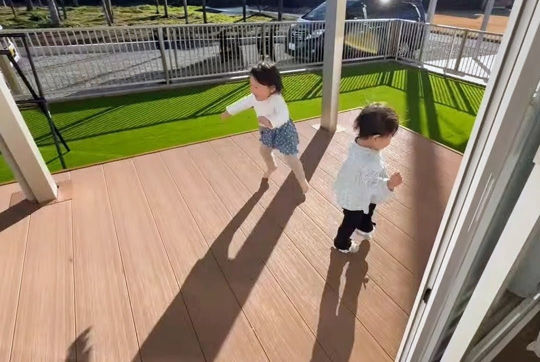 お庭には人工芝を敷き、メンテナンスの負担を軽減。フェンスで囲い、お子様が思いきり遊べる安心のスペースをつくりました。