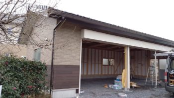 母屋に合わせた色の外壁で、三台分の広くて大きい車庫です。正面以外から見たら普通にお家です(^_-)