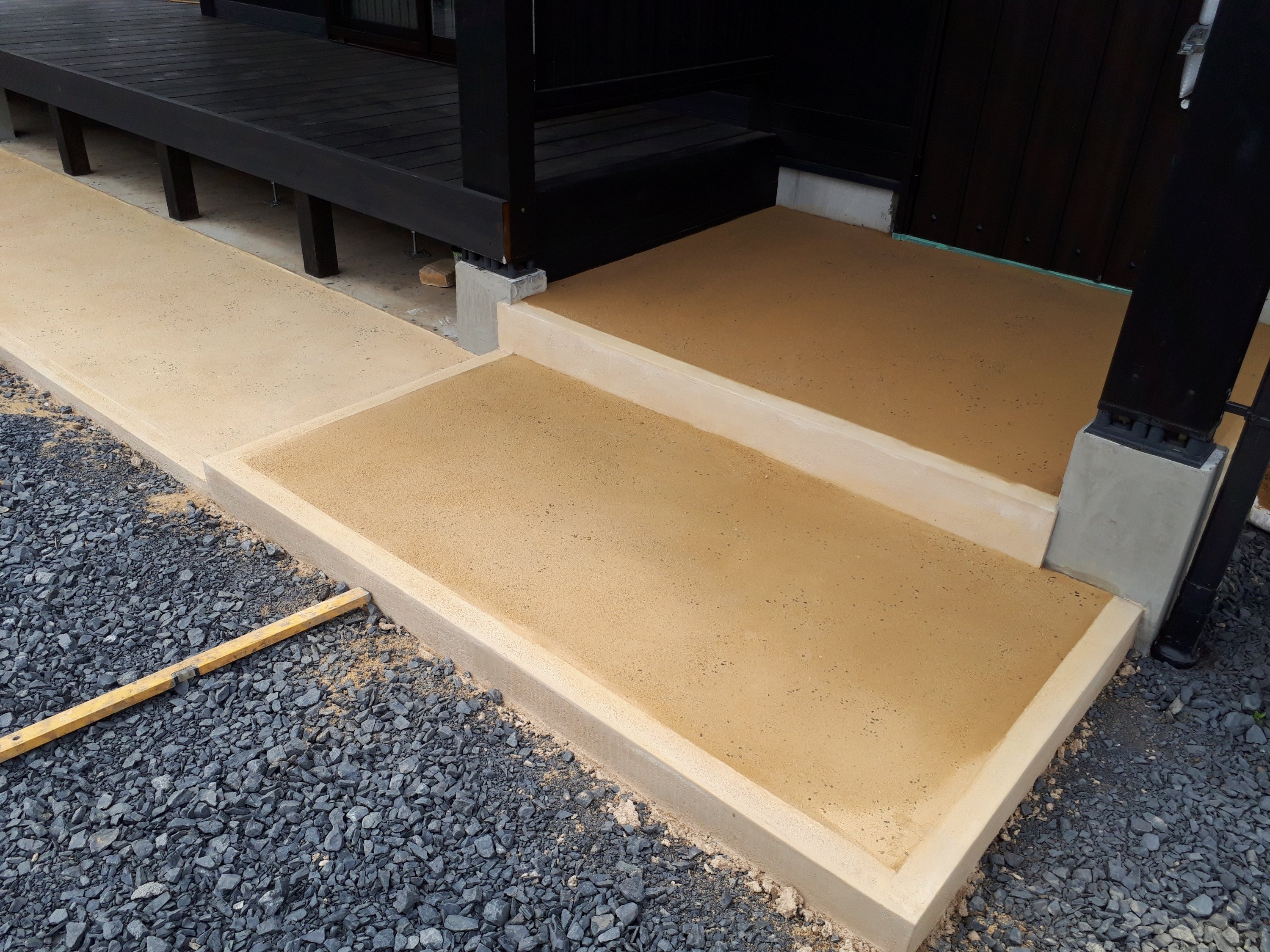 今回の御宅は玄関、そして玄関ポーチにタイルを使っていません。家の雰囲気に合わせて左官材を使いました。