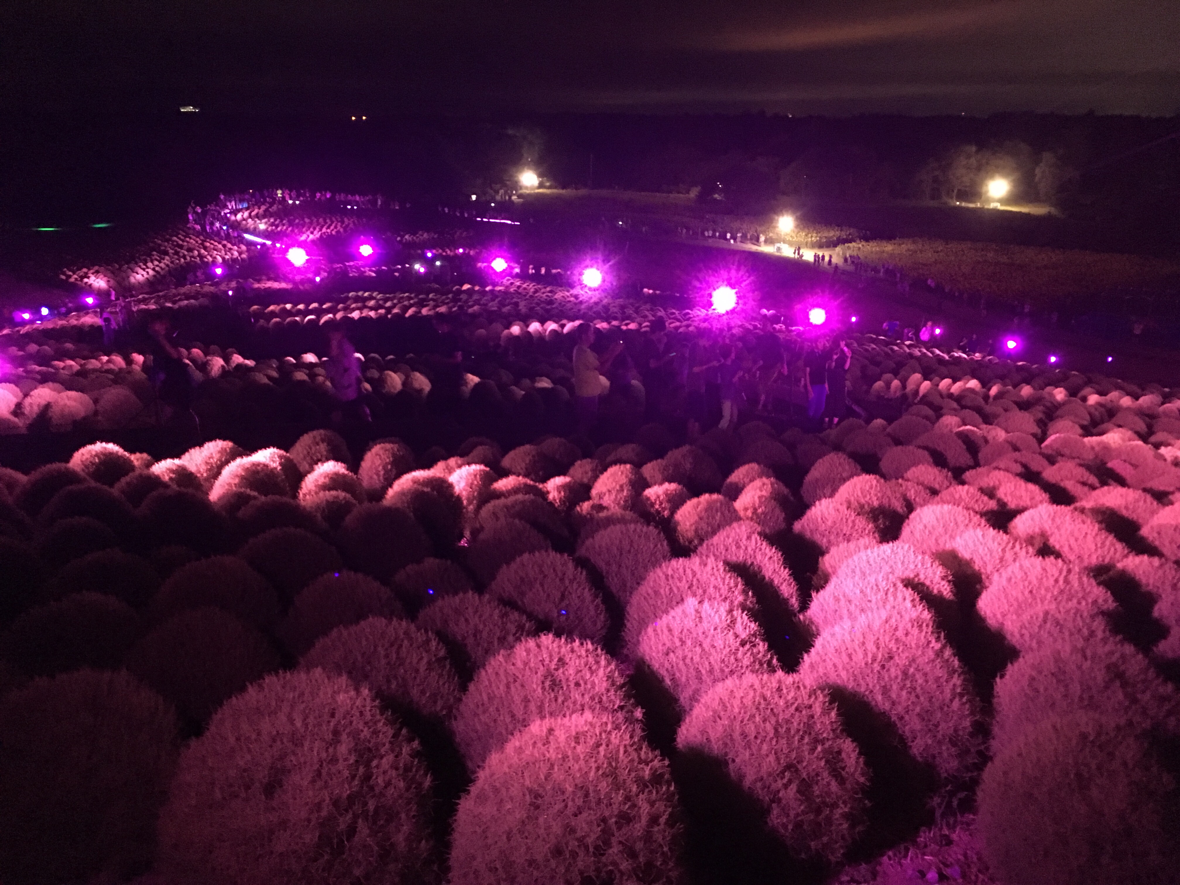 定期的に光と音のショーがあり、モコモコのコキアが色々な表情を見せて、訪れた人を飽きさせない工夫がされていました。